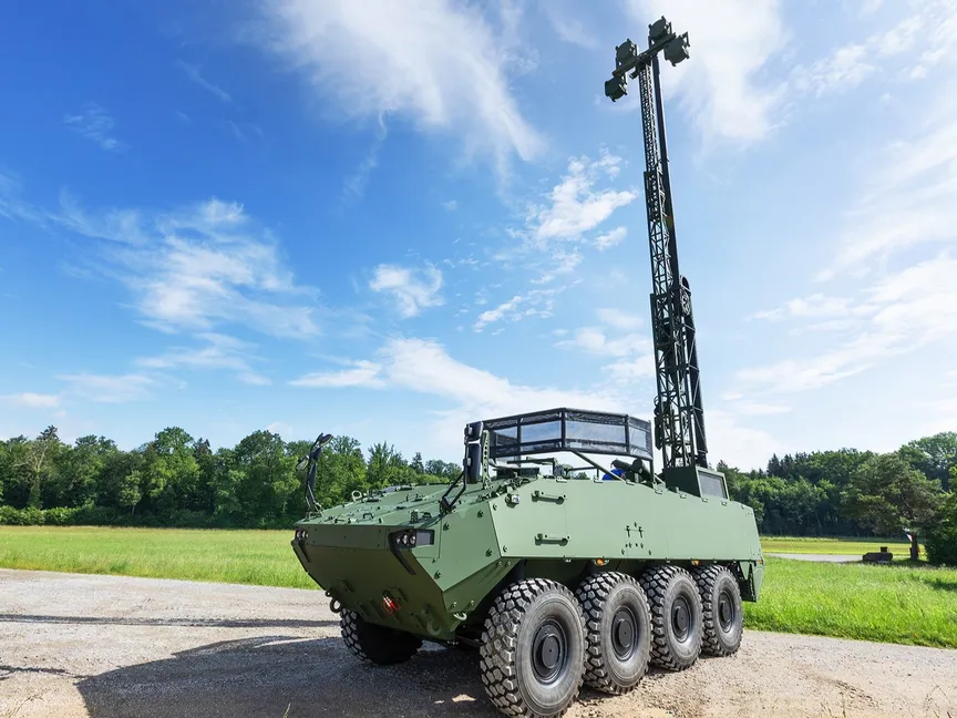 وبالتعاون مع Rheinmetall، ستجهز شركة General Dynamics مركبة Piranha 5 بنظام صاري تلسكوبي (عمود متعدد الاستخدامات يمكن تمديده وسحبه يدوياً دون الحاجة إلى الطاقة) بطول 15 متراً، ما يحولها إلى مركز اتصال مدرع عالي الحركة داخل شبكة TaWAN.