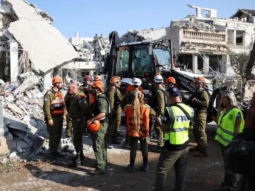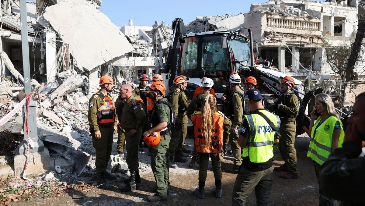 فرق الإنقاذ الإسرائيلية في موقع سقوط أحد الصواريخ الإيرانية جنوبي تل أبيب. 14 يونيو 2025 - REUTERS