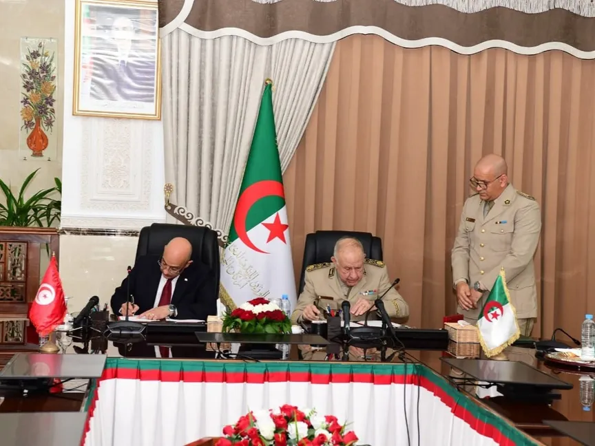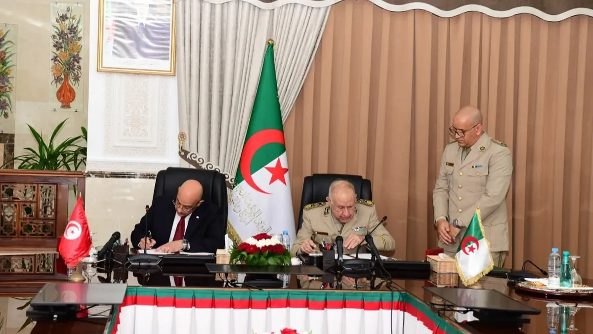 ووقع رئيس أركان الجيش الجزائري الفريق أول السعيد شنقريحة ووزير الدفاع التونسي خالد السهيلي الاتفاق، خلال استقبالهما في الجزائر من قبل الرئيس الجزائري عبد المجيد تبون.