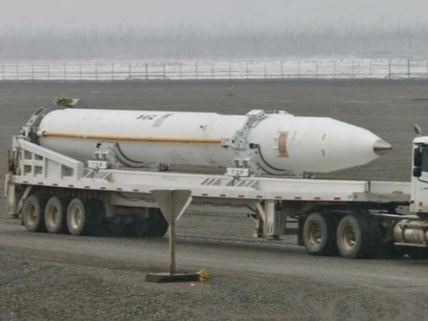 صورة غير مؤرخة لصاروخ مضاد للصواريخ الباليستية من منظومة "الدفاع الأرضي في منتصف المسار" - Military Watch