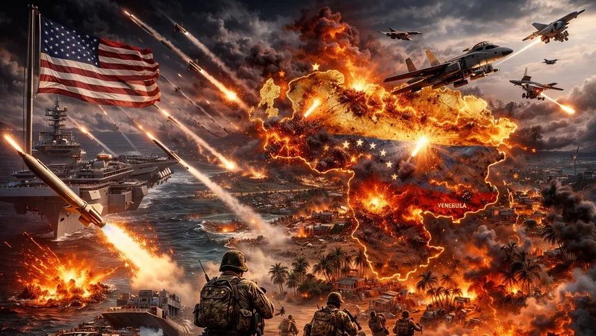 صورة منشأة بالذكاء الاصطناعي لسيناريو هجوم أميركي محتمل على فنزويلا - الشرق