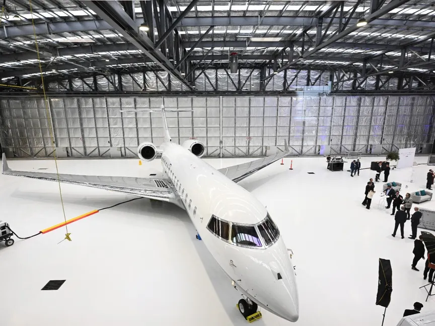 طائرة Bombardier Global 6500 أثناء إطلاق مركز خدمة Bombardier في مطار Essendon Fields في ملبورن. 28 سبتمبر 2022 - Reuters