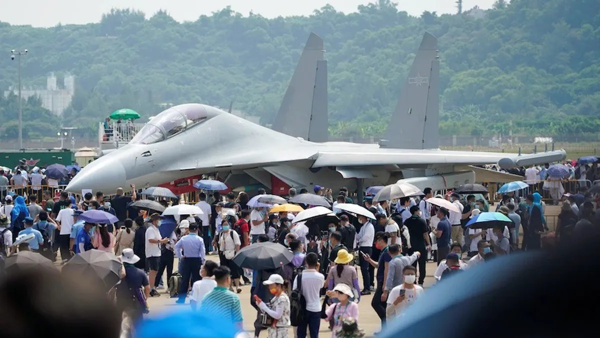 طائرة حرب إلكترونية من طراز J-16D في معرض الصين الدولي للطيران والفضاء بمقاطعة جواندونج. 29 سبتمبر 2021 - REUTERS