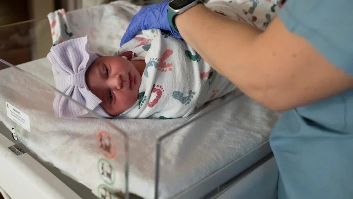 ممرضة تتحقق من المؤشرات الحيوية لطفل حديث الولادة في مستشفى بومونت بولاية ميشيجان الأميركية. 1 فبراير 2022 - REUTERS