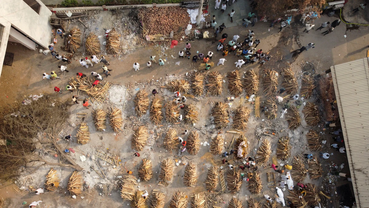 لقطة جوية لمحارق جثث في الهند توفي أصحابها بفيروس كورونا - REUTERS