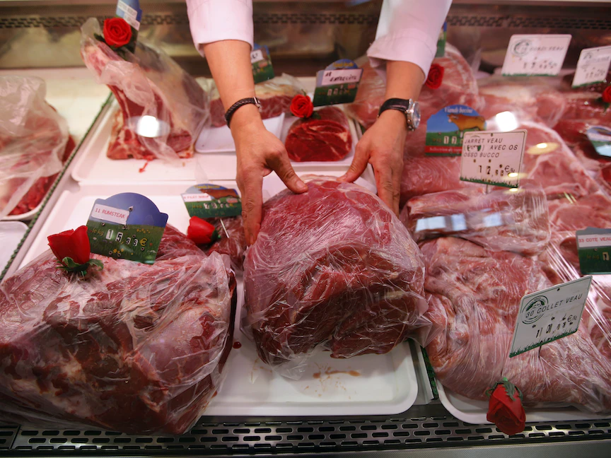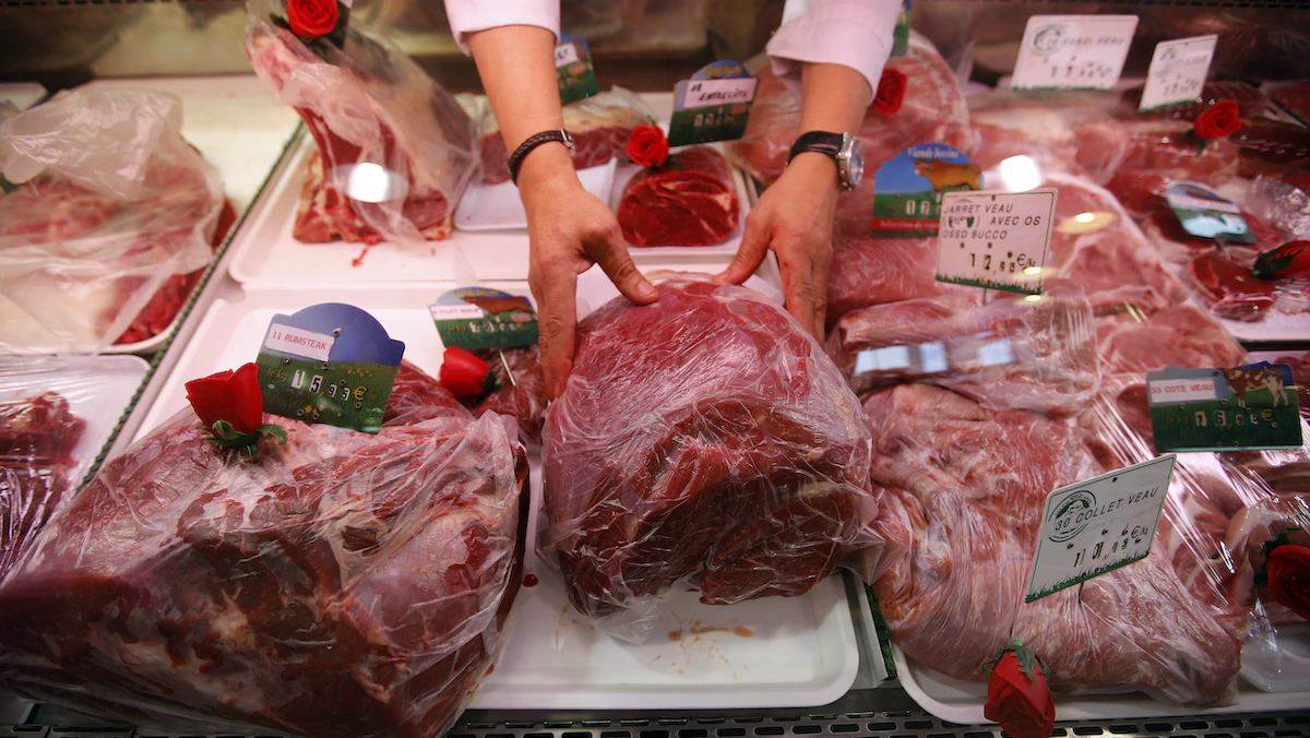 جزار يرتب قطع اللحم داخل متجره في مرسيليا بفرنسا - REUTERS