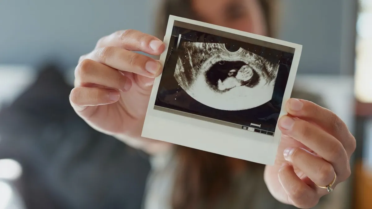 امرأة حامل تحمل صورة سونار لجنينها. - Getty Images