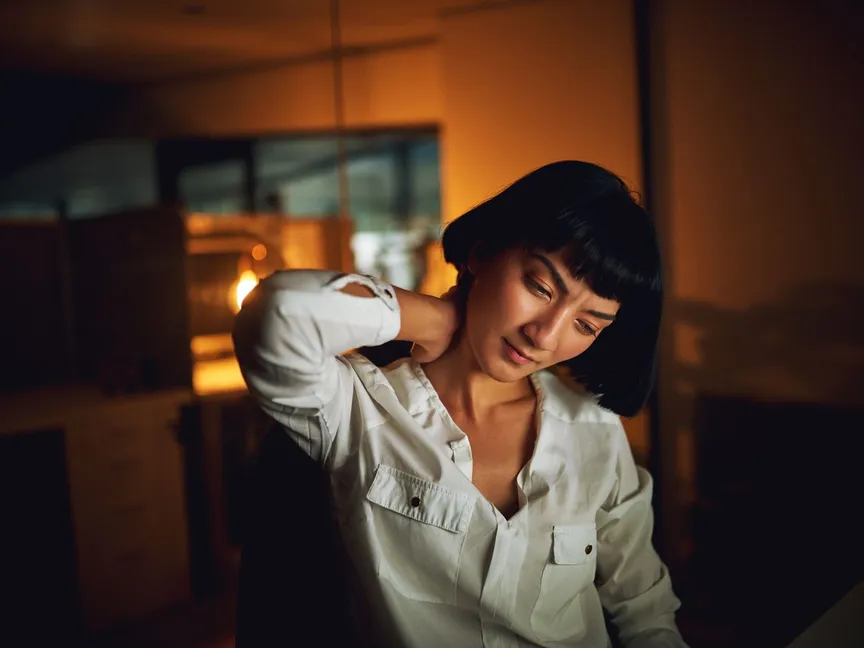 وتتشنج عضلات الرقبة من الوضعية الخطأ، سواء بسبب انحنائك على الحاسوب أو تحدب ظهرك على مكتب العمل، كما يمكن أن يكون التهاب الفصال العظمي سبباً شائعاً لألم الرقبة.