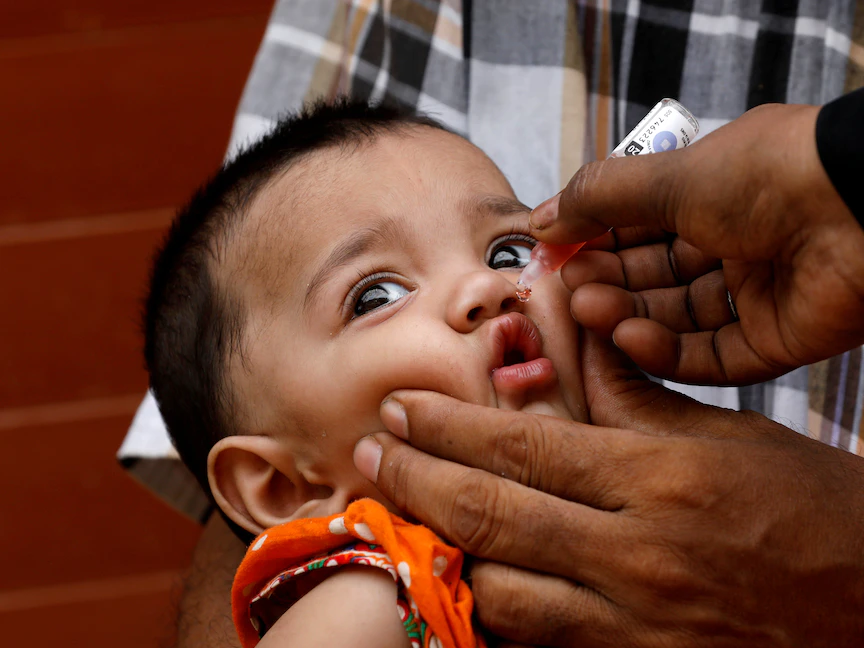 طفلة باكستانية تتلقى لقاح شلل الأطفال في حي منخفض الدخل في كراتشي - REUTERS