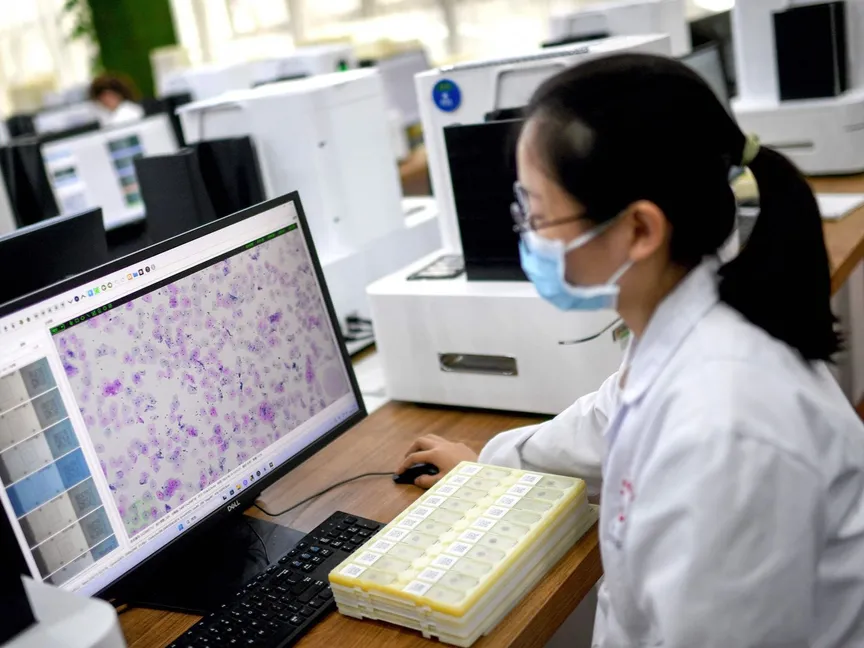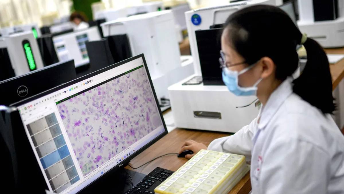 إجراء فحص سرطان باستخدام الذكاء الاصطناعي بمنشأة طبية في ووهان بالصين. 15 يونيو 2023 - AFP