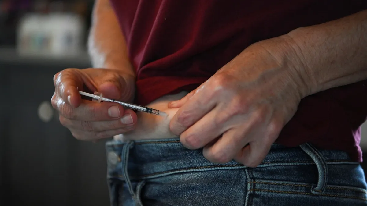 سيدة تحقن نفسها بحقنة لإنقاص الوزن في منزلها بولاية ميزوري في الولايات المتحدة. 24 أبريل 2025 - Reuters