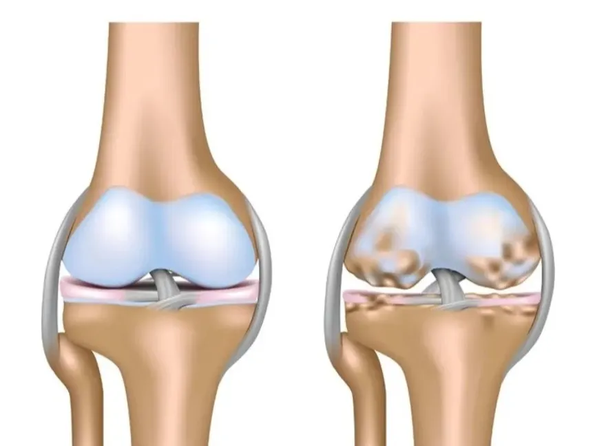 - الأسباب: التلف التدريجي للغضروف ويؤدي لاحقاً إلى احتكاك العظام ببعضها.