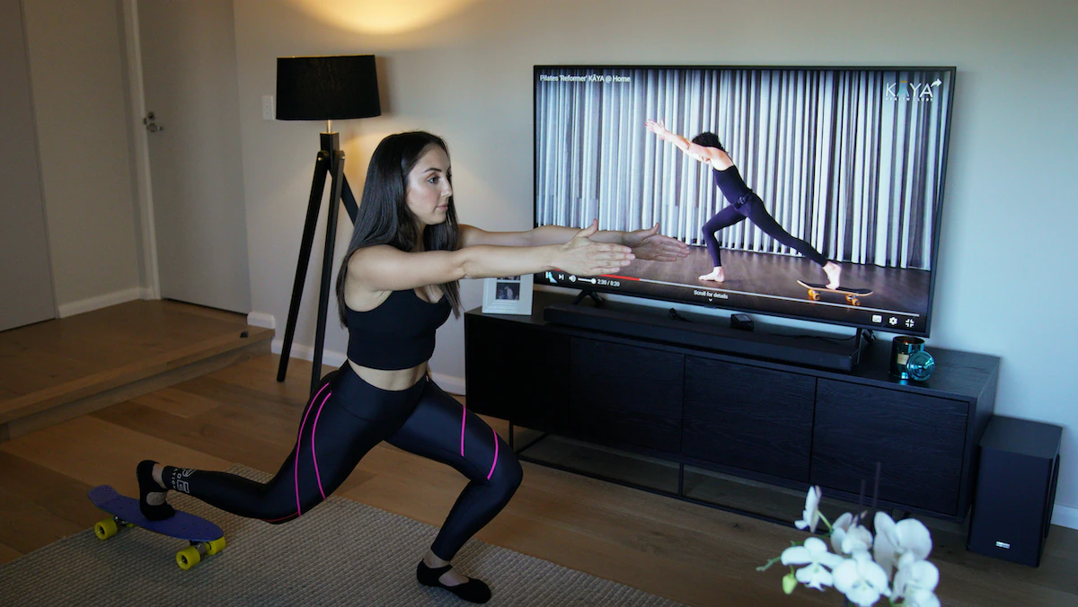 فتاة أسترالية تمارس تمارين رياضية في المنزل خلال فترة الإغلاق بسيدني - REUTERS