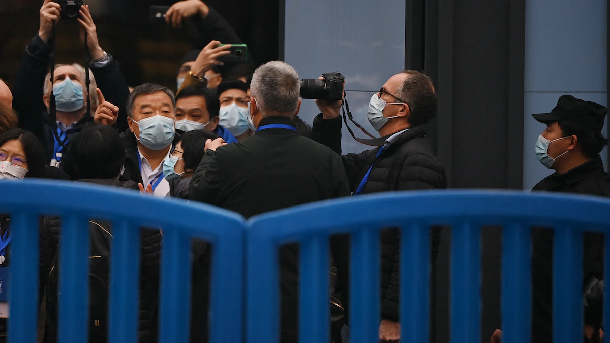 فريق منظمة الصحة العالمية أثناء زيارته لسوق ووهان خلال التحقيق في منشأ فيروس كورونا - 31 يناير 2021 - AFP
