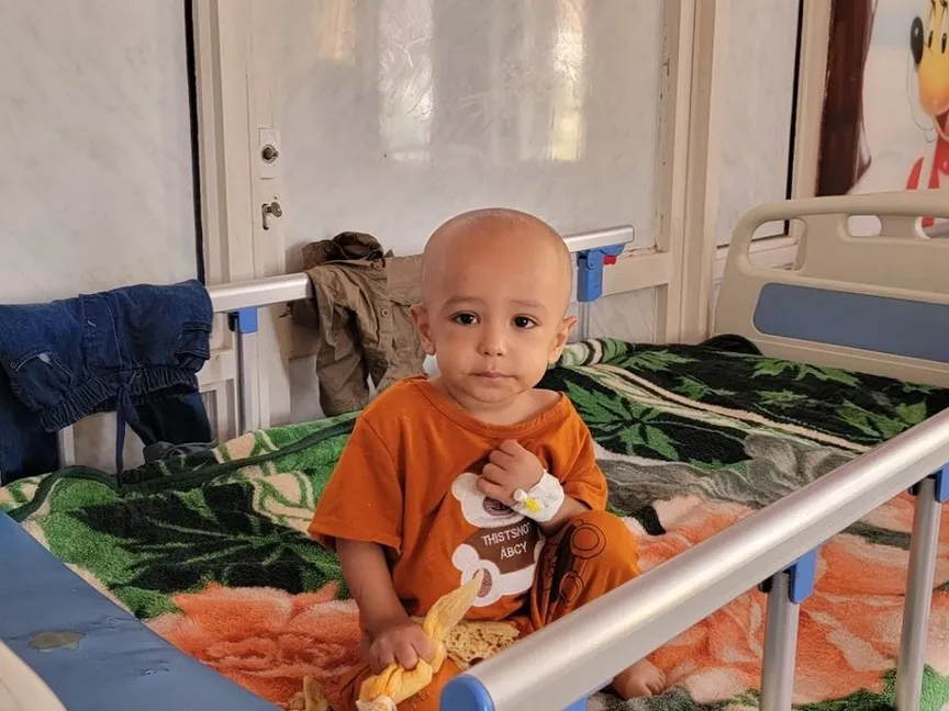 طفل يتلقى العلاج في مركز الأمل لعلاج السرطان بمدينة تعز، جنوب غرب اليمن. 9 يوليو 2024 - Arab World Press (AWP)
