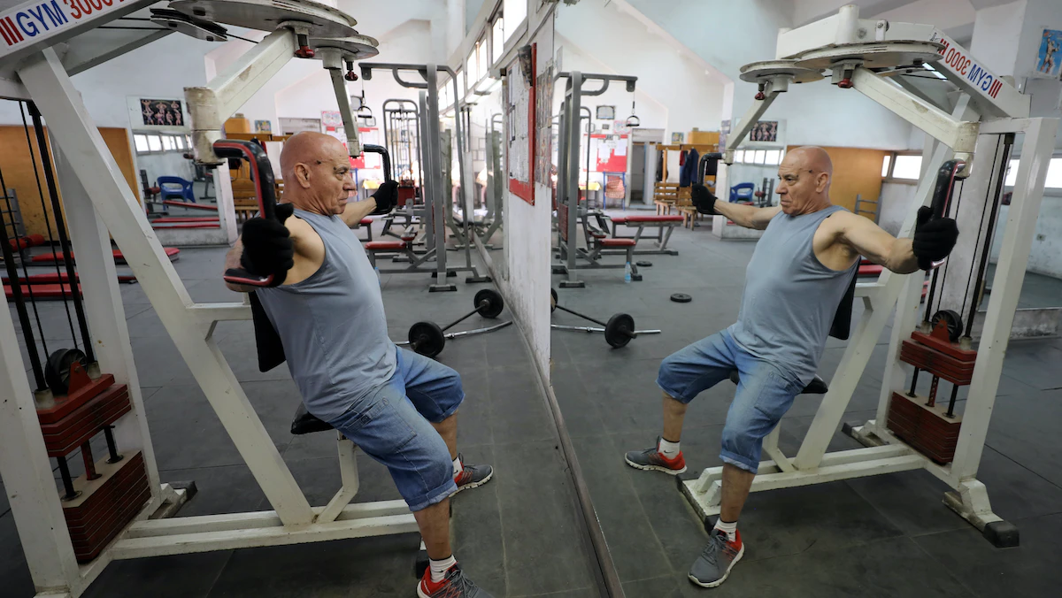 مسن مصري (80 عاماً)، يمارس الرياضة في صالة ألعاب رياضية بالقاهرة -  26 فبراير 2018. - REUTERS