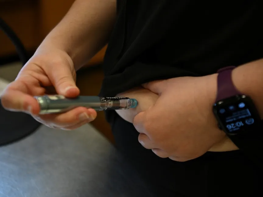 سيدة تحقن نفسها في البطن بأدوية لعلاج السمنة في الولايات المتحدة. 28 أبريل 2025 - Reuters