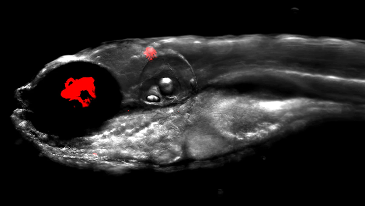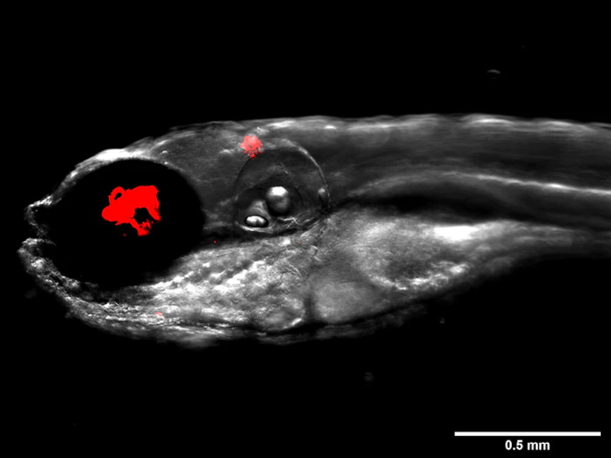 يظهر الخراج في سمكة الزرد باللون الأحمر جرّاء الإصابة بعدوى الجرثومة الفطرية - Dr Matt Johansen and the Kremer Lab