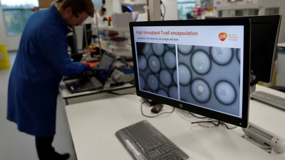 باحث يدرس خلايا سرطانية في مركز أبحاث شركة (GSK) للصناعة الدوائية في ستيفنيج، بريطانيا. 26 نوفمبر 2019 - REUTERS