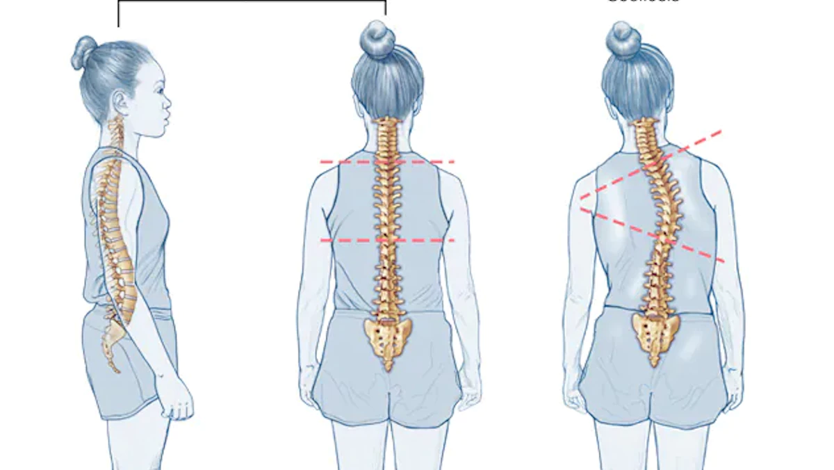 - مشكلات منذ الولادة تؤثر على تطور عظام العمود الفقري.