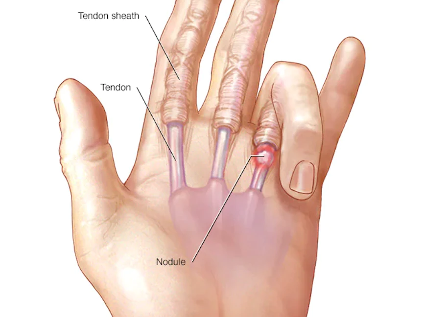 ويعرف الإصبع الزنادي أيضاً باسم "الإصبع الزنادية"، وتحدث هذه الحالة عندما يؤدي الالتهاب إلى تضيُّق المساحة الموجودة داخل الغمد الذي يحيط بالوتر في الإصبع المُصاب.