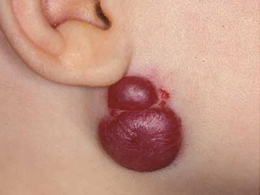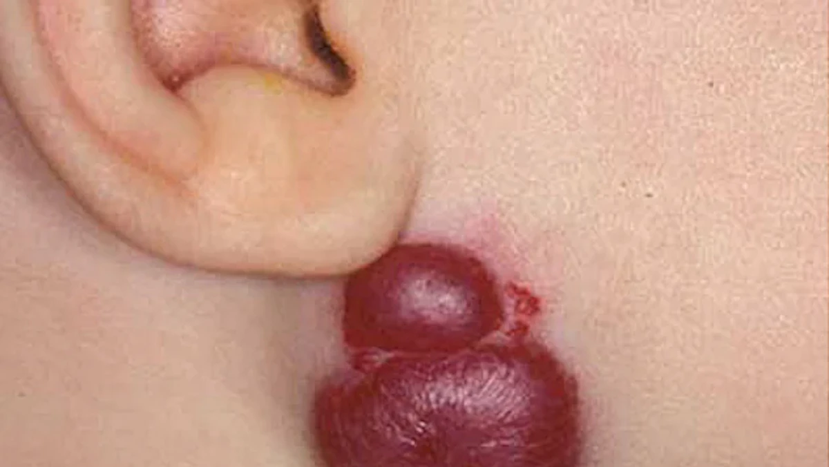 الورمُ الوعائيُّ الدموي هو علامةٌ حمراء ساطعة تظهر عند الولادةِ أو في الأسبوعِ الأولِ أو الثاني من الولادة، إذ تبدو وكأنها نتوء مطاطي، وتتكون من أوعية دموية إضافية في الجلد.