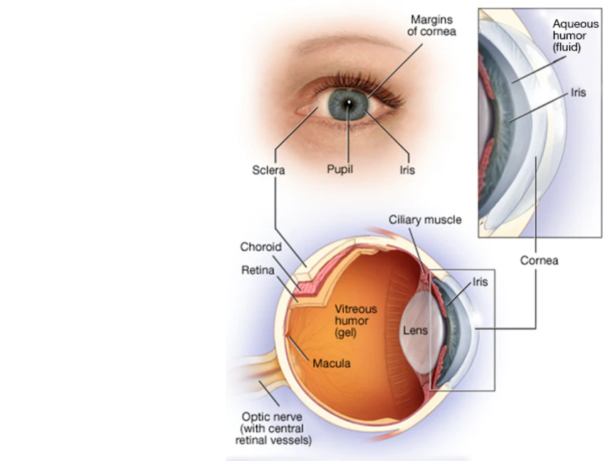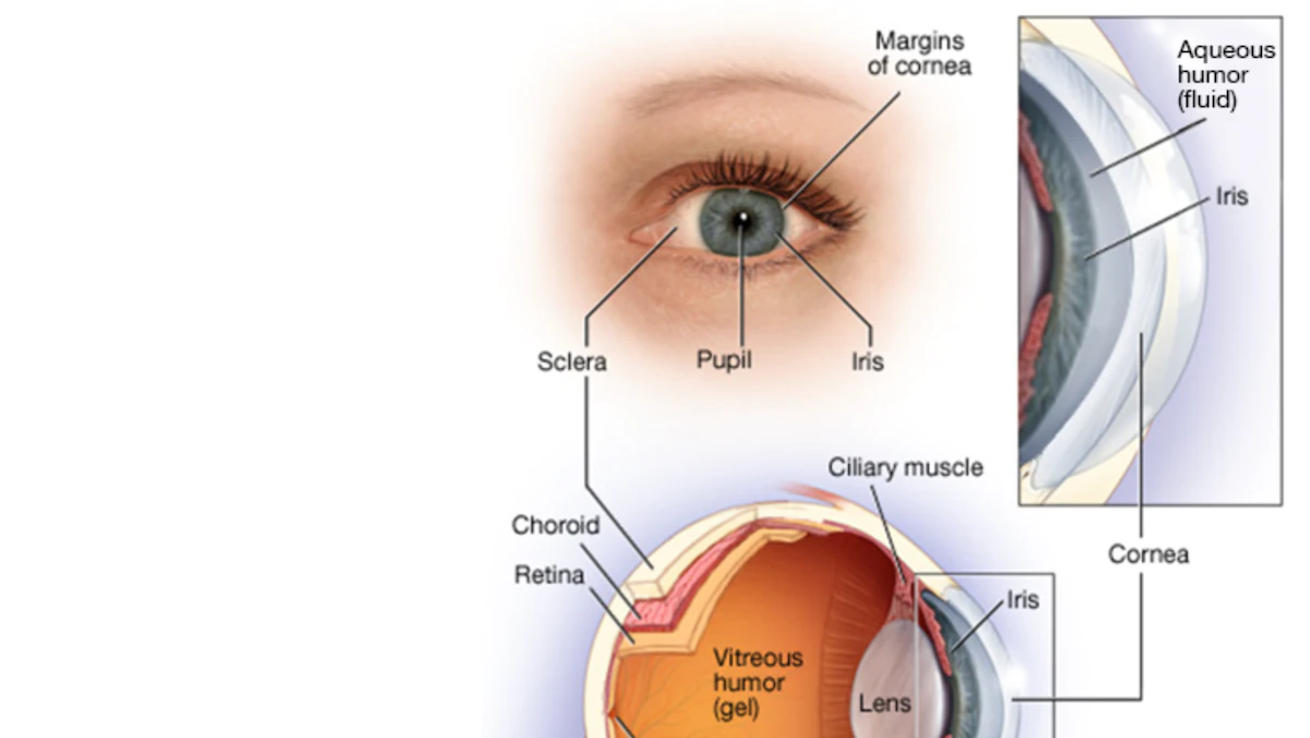 العين هي بنى مكتنزة ومعقدة التركيب قطرها بحجم يقترب من 2.5 سنتيمتر تتلقى ملايين المعلومات عن العالم الخارجي والتي يعالجها الدماغ بسرعة - Mayo clinic