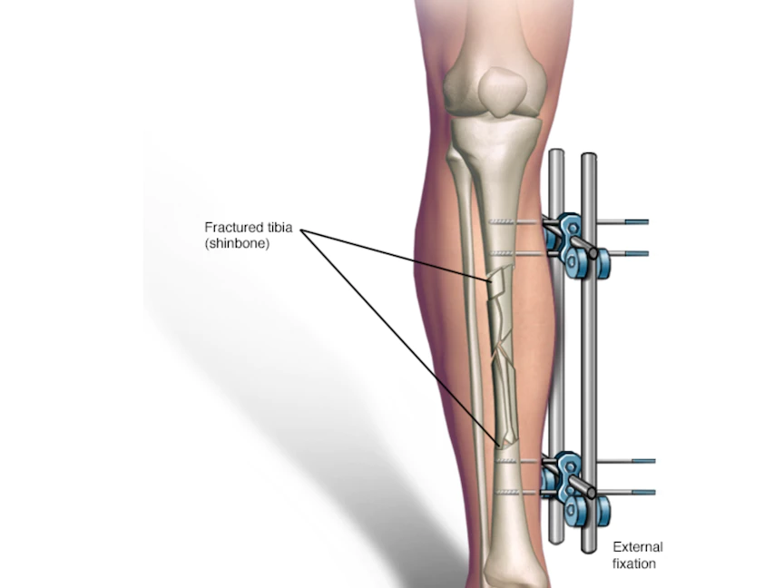 بالنسبة لبعض الإصابات، قد يوصي طبيبك أيضاً بأداة تثبيت خارجية، توفر الاستقرار أثناء عملية الشفاء وتتم إزالتها عادةً بعد نحو ستة إلى ثمانية أسابيع.