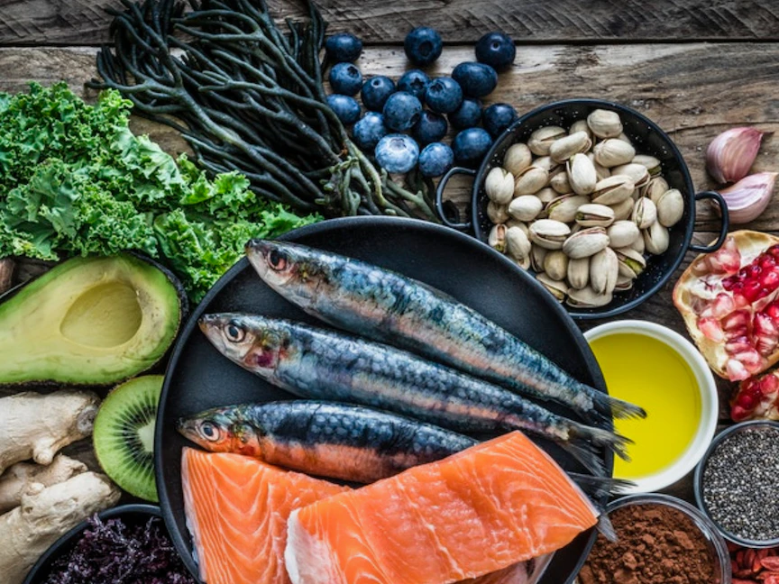 - أحماض أوميجا 3 الدهنية: الرنجة، والماكريل وتراوت قوس قزح، والسلمون، والسردين، والتونة.