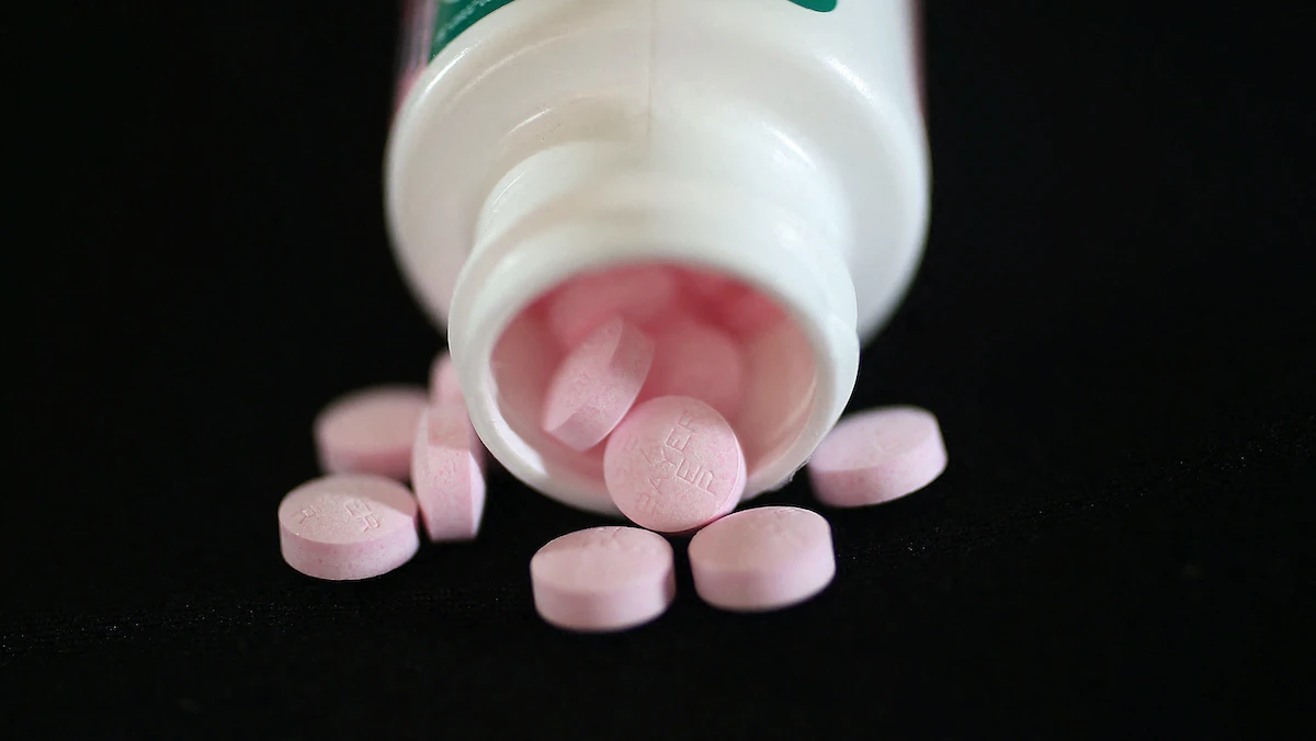 قارورة من عقار الأسبرين عيار 81 ميلليجرام في ولاية ميامي الأميركية - 11 أبريل 2016 - AFP