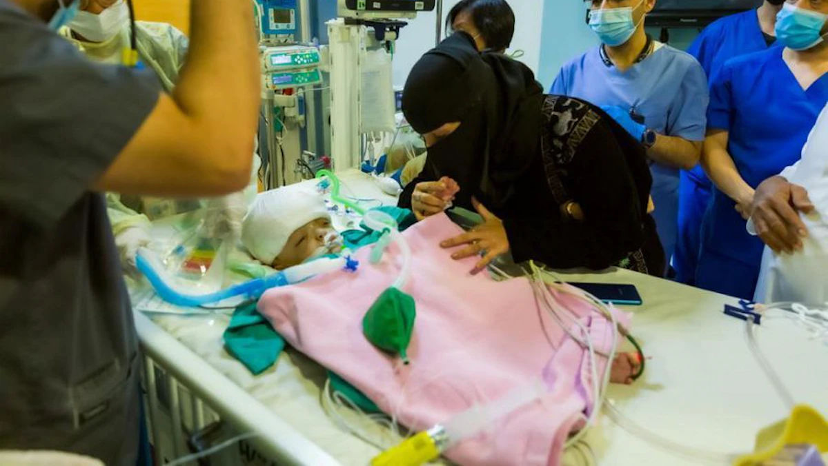 نجح أطباء سعوديون في فصل توأم سيامي يمني بعد عملية جراحية معقدة استمرت 15 ساعة، شارك فيها 24 مختصاً من أطباء الأعصاب والتجميل والتخدير.