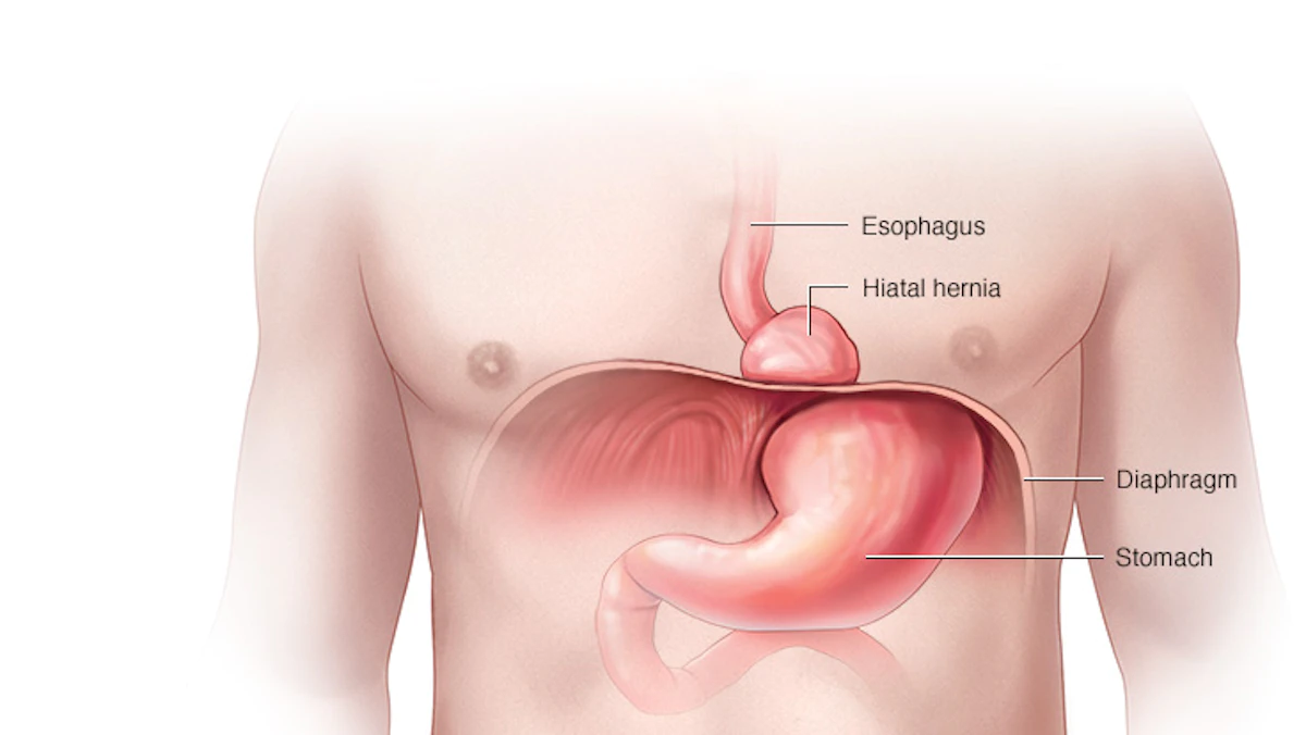 - الشعور بنخر، مغص حاد، أو ألم (عسر الهضم) أعلى البطن، والذي ربما يتفاقم أو يتحسن بتناول الطعام.
