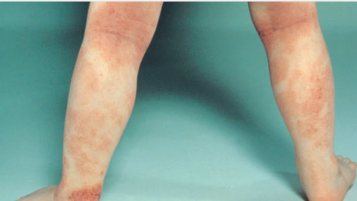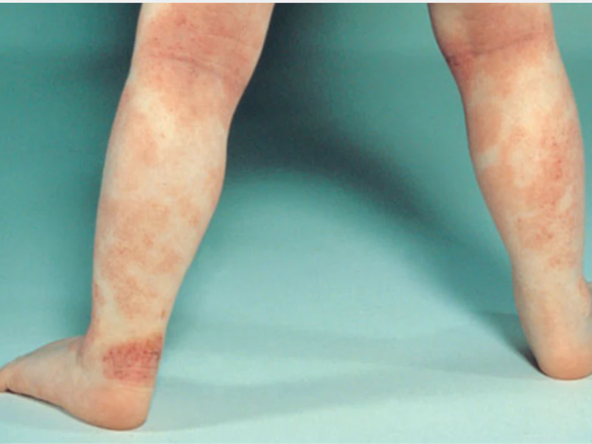 - لطخات خطية تظهر على الذراعين أو الساقين وربما تظهر على الجبهة أو فروة الرأس.