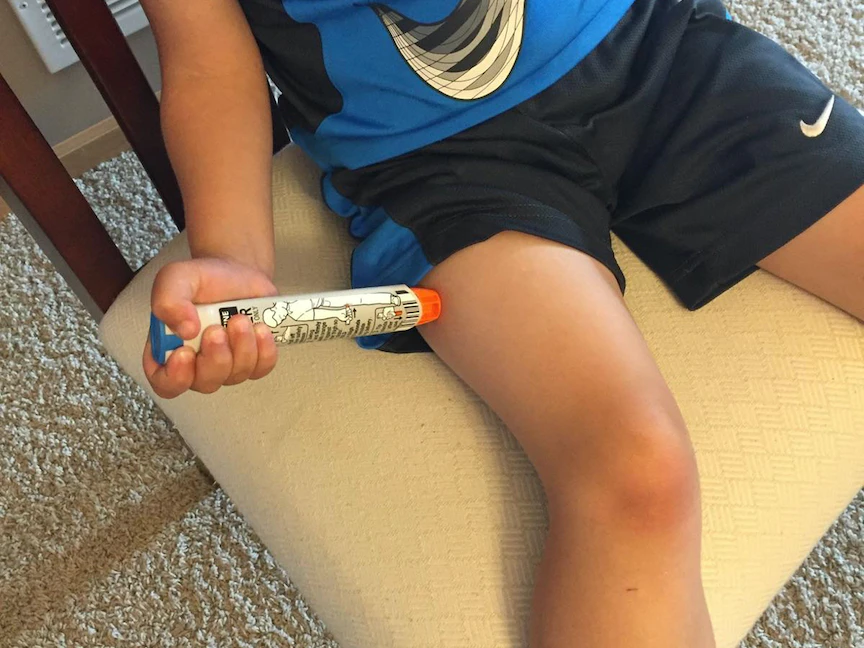 في حالة رد الفعل التحسسي الحاد، قد يحتاج المريض إلى حَقن طارئ بمادة إبينيفرين (الأدرينالين) والنقل إلى غرفة الطوارئ. ويحمل كثير من الناس الذين يعانون الحساسية حاقِناً ذاتياً لمادة إبينيفرين (Adrenaclick، أو EpiPen). ويتكون هذا الجهاز من محقن وإبرة مخفية يُستخدمان في حقن جرعة علاجية واحدة عند ضغطها على الفخذ.