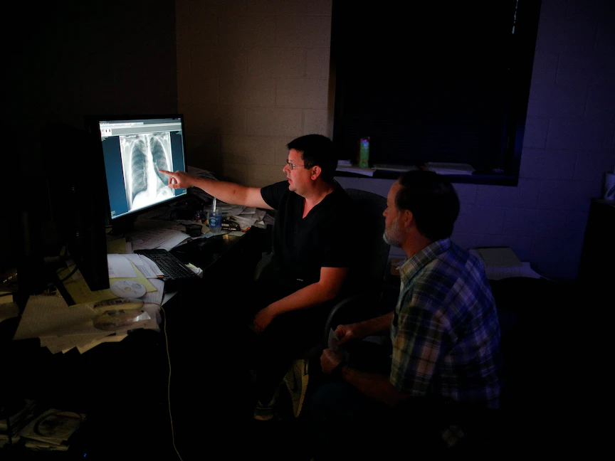 وتكون وضعية أجسام العديد من المصابين بتقعر القفص الصدري منحنية إلى الأمام، مع بروز الضلوع من الصدر وبروز لوحي الكتفين.