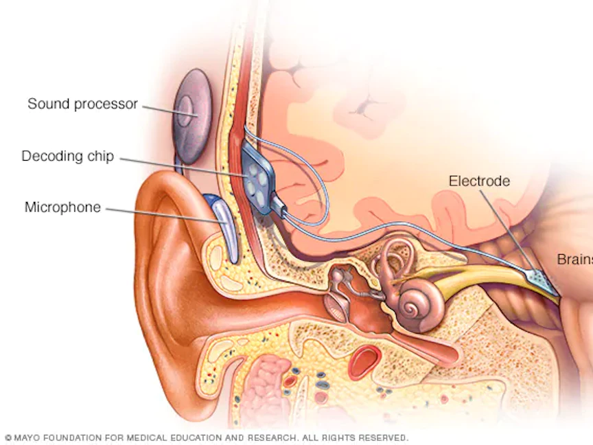 - توصيل أقطاب كهربائية بجذع الدماغ مباشرةً لتنبهك إلى الصوت عند تحفيزها.