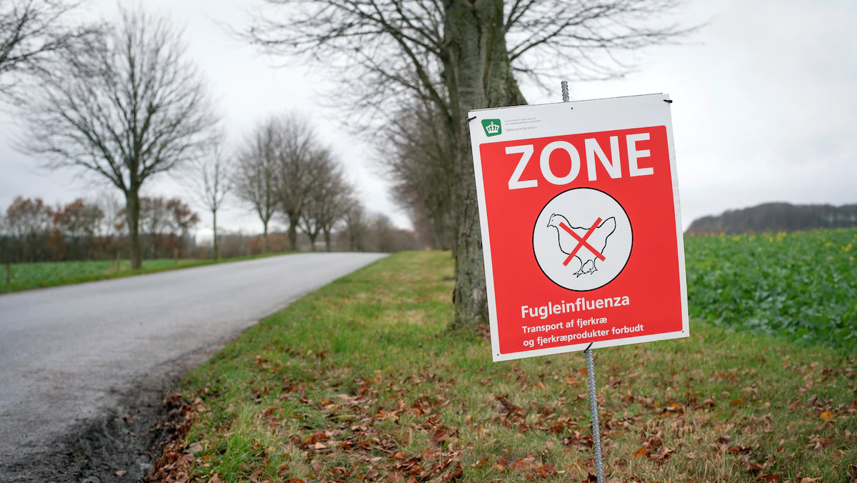 لافتة تحذر من إنفلونزا الطيور في منطقة راندرز الدنمارك- 17 نوفمبر 2020 - via REUTERS