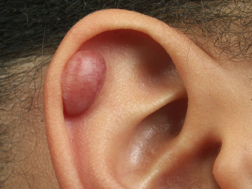 - بروز جلدي لامع ومتكتل دون شعر.