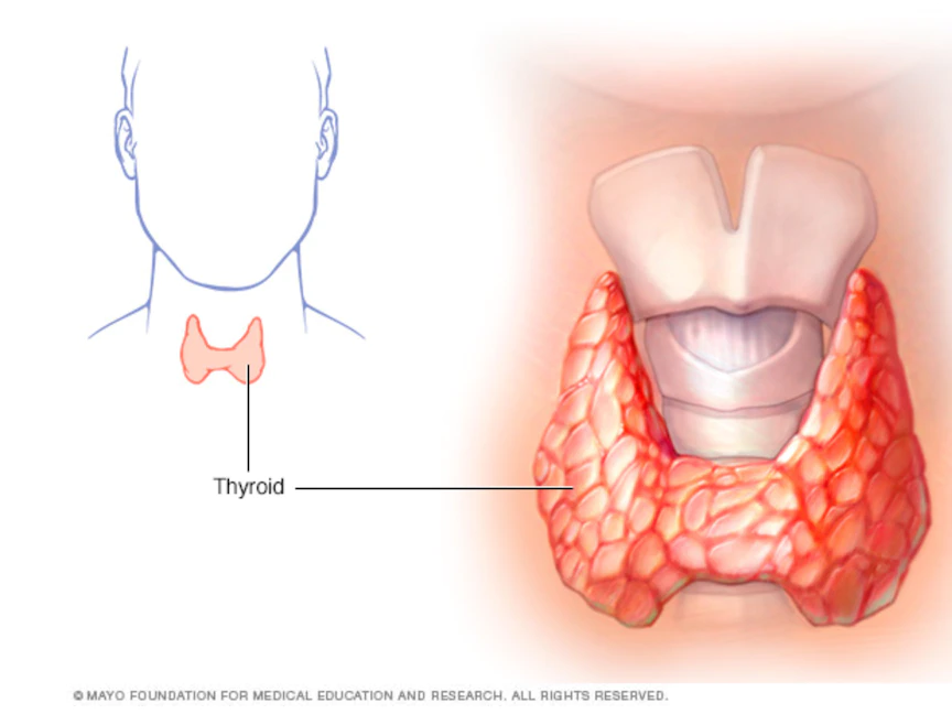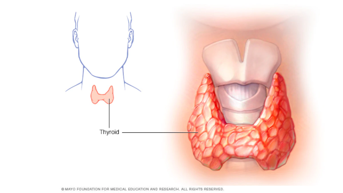 تقع الغدة الدرقية في أسفل العنق أسفل تفاحة آدم مباشرة - "مايو كلينيك"