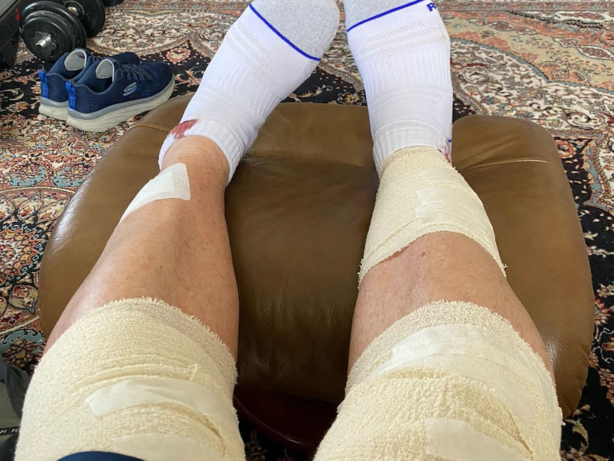 - ارتداء جوارب الضغط المرنة، ولكن تجنب ارتداء الجوارب الضيقة حول الجزء العلوي منها، وإذا كان بإمكانك رؤية آثار المطاط على جلدك فقد تكون ضيقة جدًا.