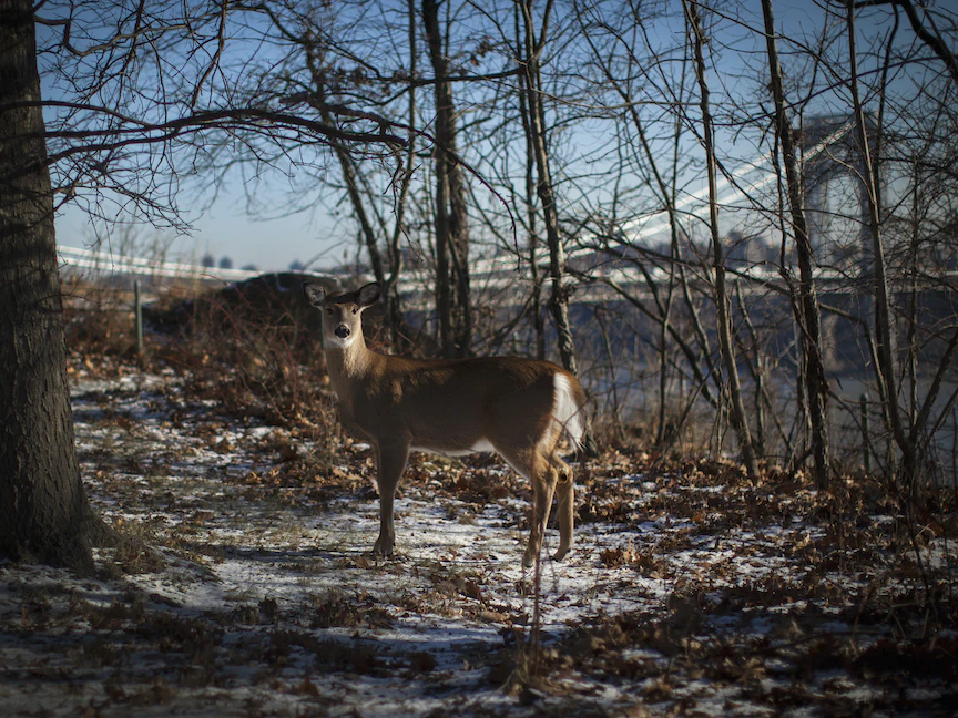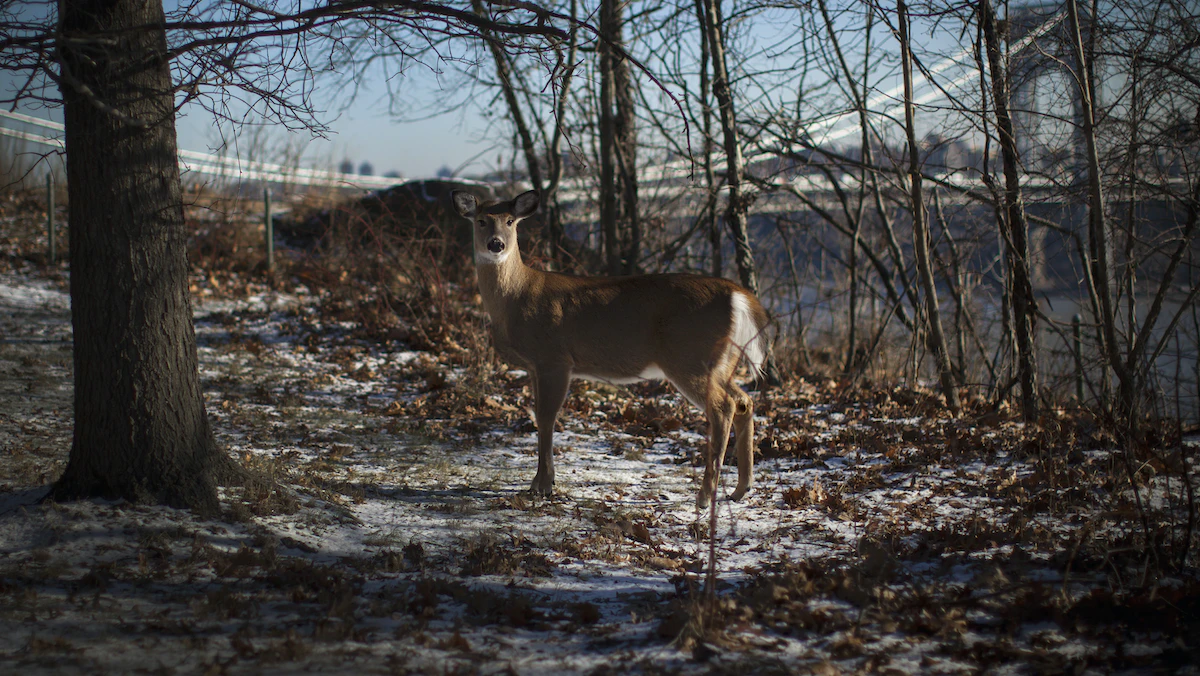 الغزال ذا الذيل الأبيض في حديقة "فورت لي" بولاية نيوجيرسي الأميركية. 8 يناير 2015 - REUTERS