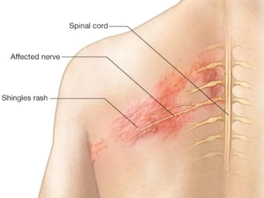 الهربس النطاقي أو ما يعرف بـ "الحزام الناري"، هو عدوى فيروسية تسبب طفحاً جلدياً مؤلماً، يظهر غالباً على شكل شريط من البثور يغطي الجانب الأيسر أو الأيمن من جذع المصاب.