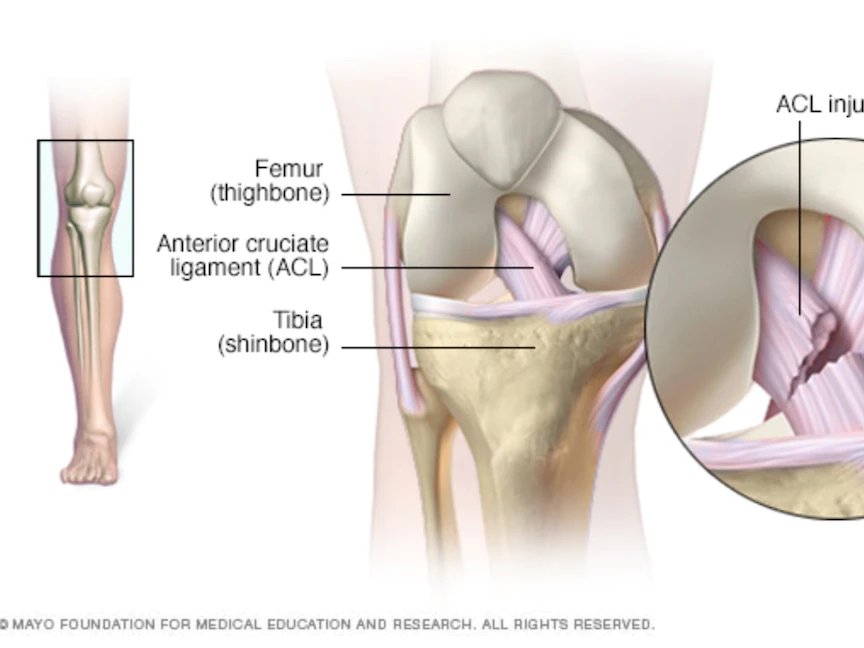 صورة توضح إصابة الرباط الصليبي الأمامي الذي يعد من الأربطة الرئيسية التي تساعد على استقرار مفصل الركبة - Mayo Clinic