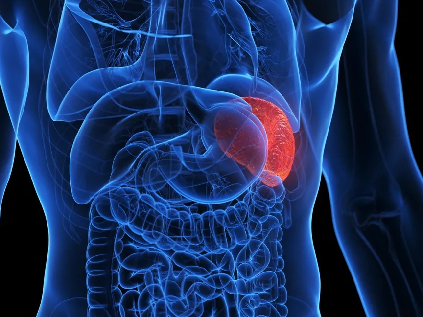 - الشعور بالامتلاء دون تناول شيء من الطعام، أو بعد تناول كمية قليلة منه؛ بسبب ضغط الطحال على المعدة.