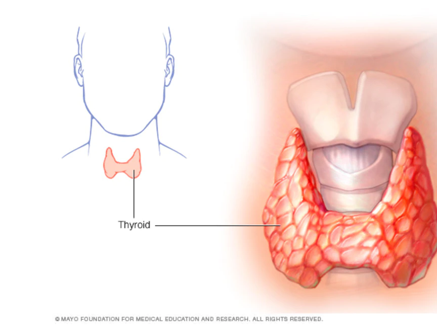 تقع الغدة الدرقية في أسفل العنق أسفل تفاحة آدم مباشرة - Mayo Clinic