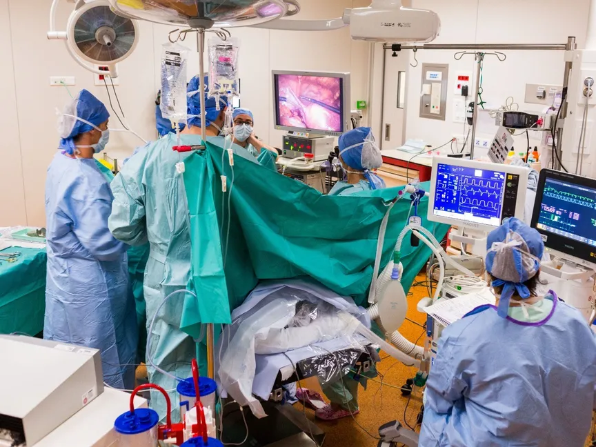 - العلاج الإشعاعي. يستخدم العلاج الإشعاعي حزم أشعة قوية لقتل خلايا الورم. ويمكن أن تنبعث هذه الطاقة من الأشعة السينية أو البروتونات أو مصادر أخرى. ستستلقي أثناء العلاج الإشعاعي على طاولة، بينما يتحرك جهاز من حولك. ويوجّه هذا الجهاز الإشعاع إلى نقاط محددة بدقة في الجسم.