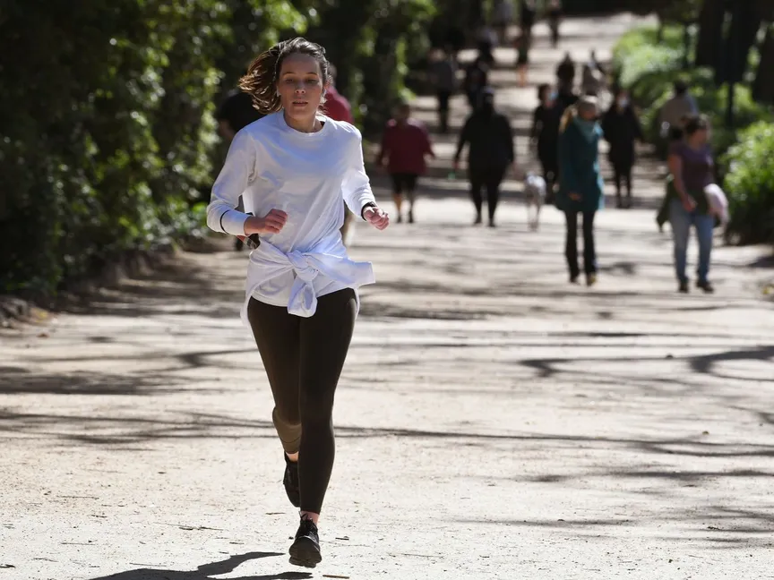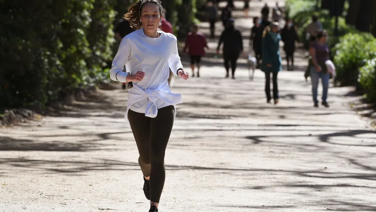 امرأة تمارس رياضة الجري في مدينة ملبورن الأسترالية  - AFP