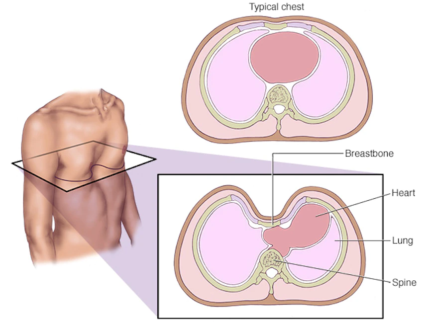 "تقعر القفص الصدري" هو انخفاض عظم صدر الشخص داخل الصدر، وفي الحالات الحادة يبدو تقعر القفص الصدري قد تم تجويفه، مخلفاً انبعاجاً عميقاً.