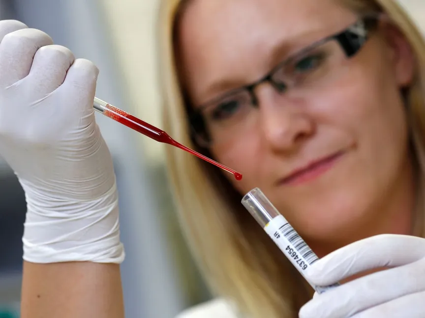 فقد تكشف فحوصات الدم عن عدد خلايا الدم الحمراء، والأنماط غير الطبيعية في الحجم، أو الشكل، أو اللون، ويمكن استخدام اختبارات الدم في إجراء تحليل للحمض النووي للكشف عن الجينات الطافرة.