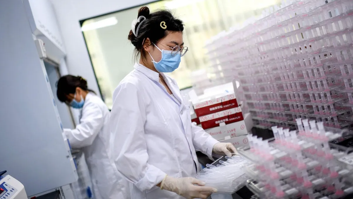 إجراء فحص سرطان باستخدام الذكاء الاصطناعي بمنشأة طبية في ووهان بالصين. 15 يونيو 2023 - AFP